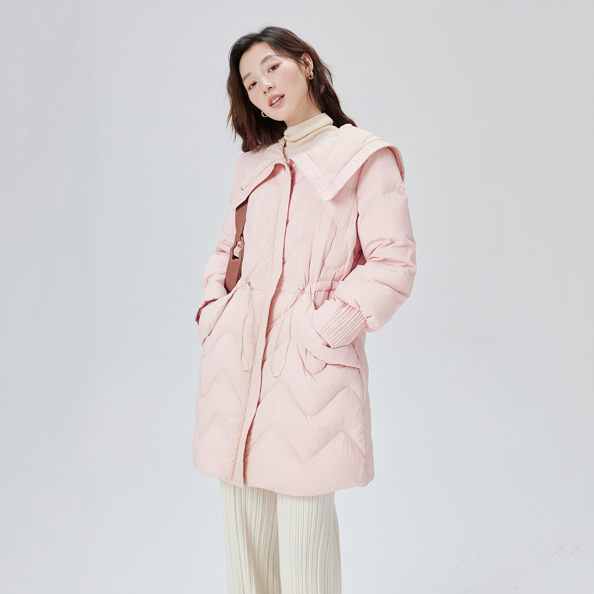 减龄翻领羽绒服女中长款秋冬抽绳收腰女式鸭绒外套女 779990