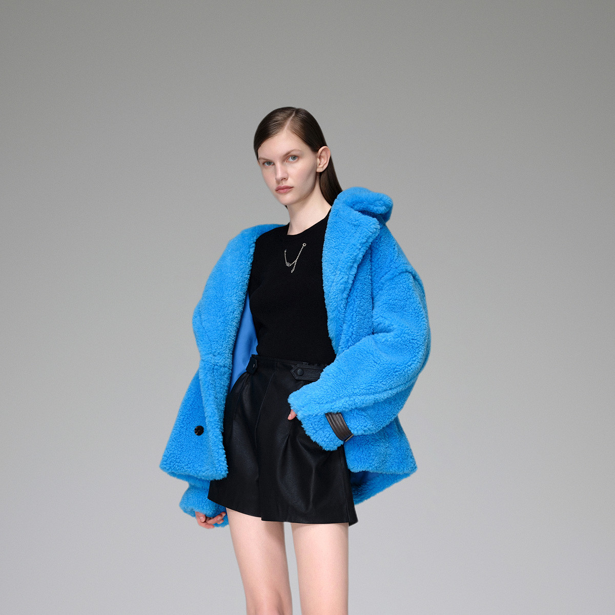 朗姿纯羊毛复古双面呢夹克高级感正肩毛呢冬季上衣 447257