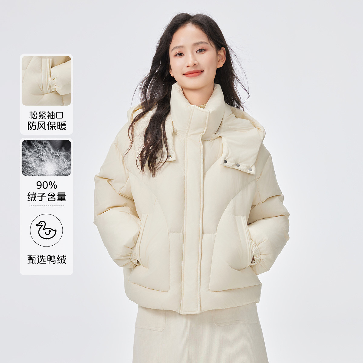 【鹅绒】厚款保暖连帽女士短款宽松休闲泡芙羽绒服 875871