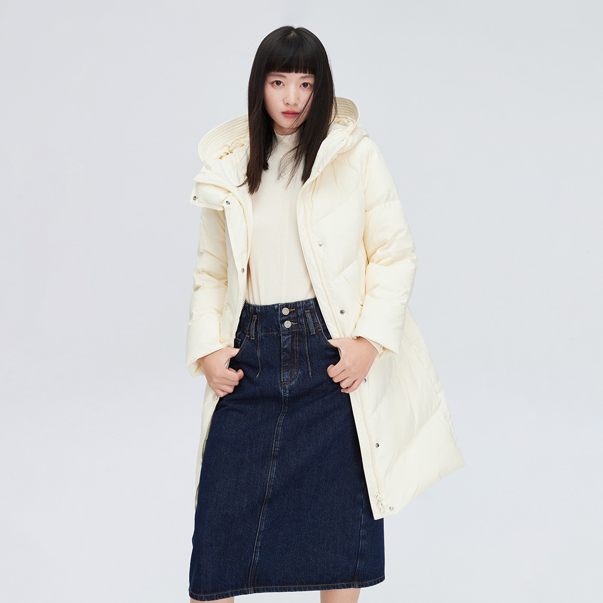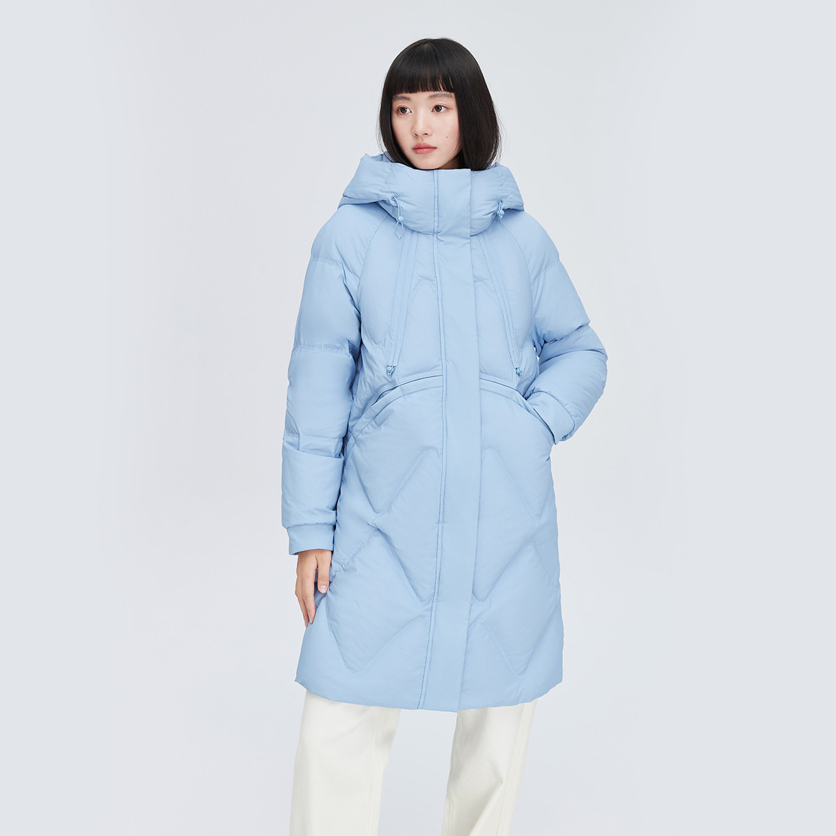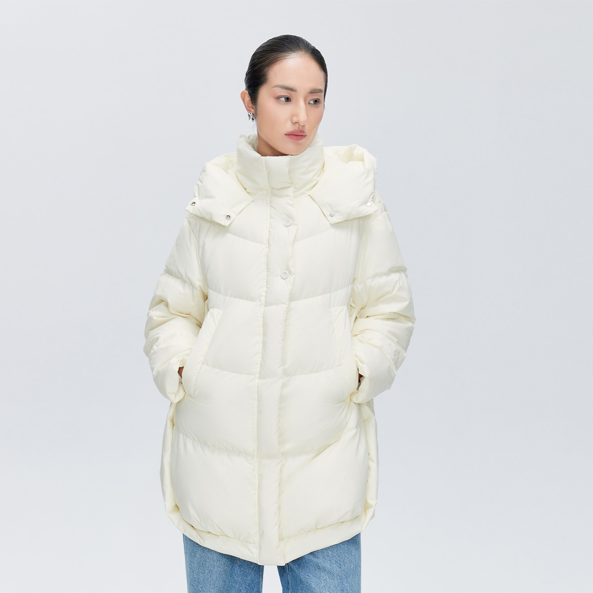 【商场同款】时尚休闲H型中长款羽绒服女御寒连帽鸭绒女式外套 835926