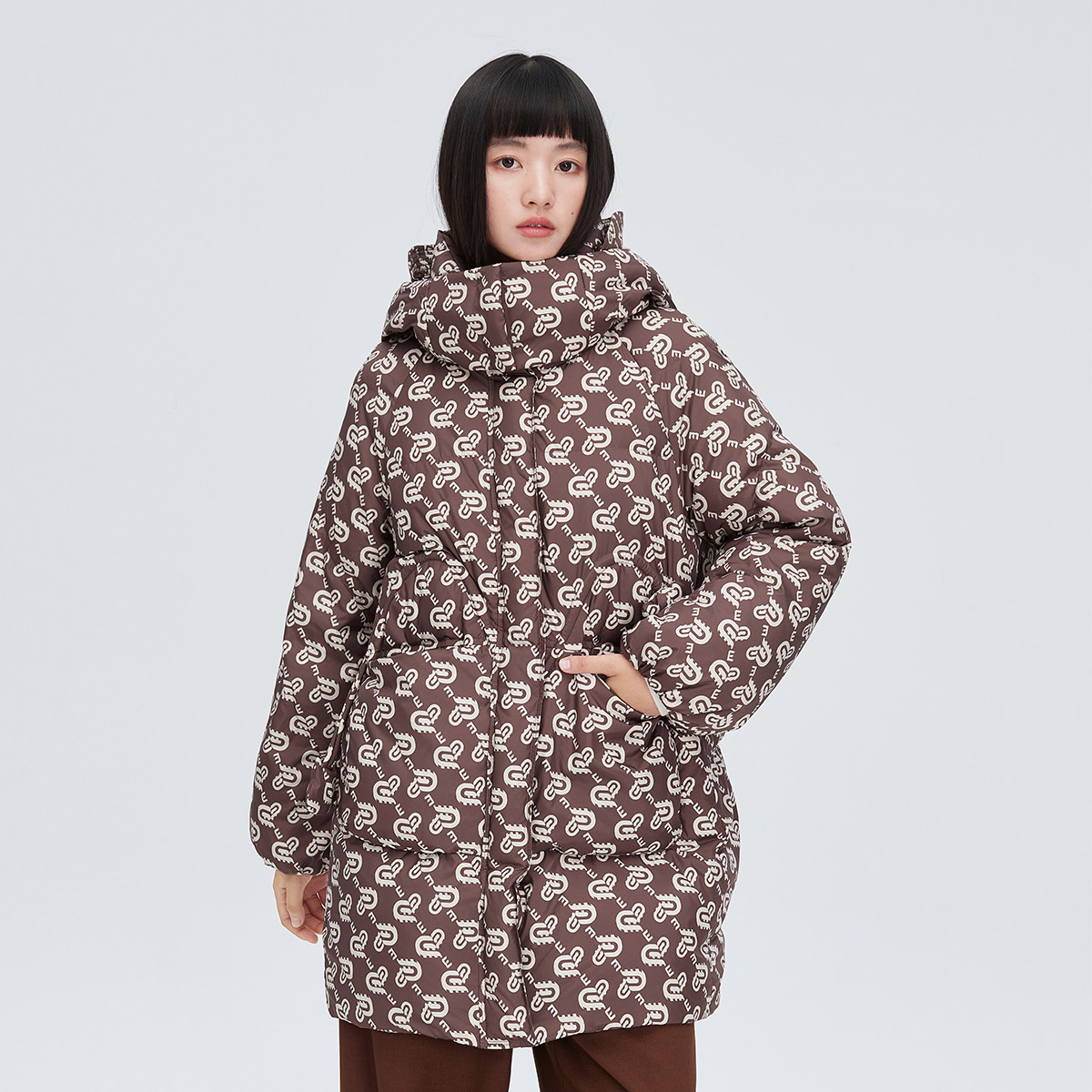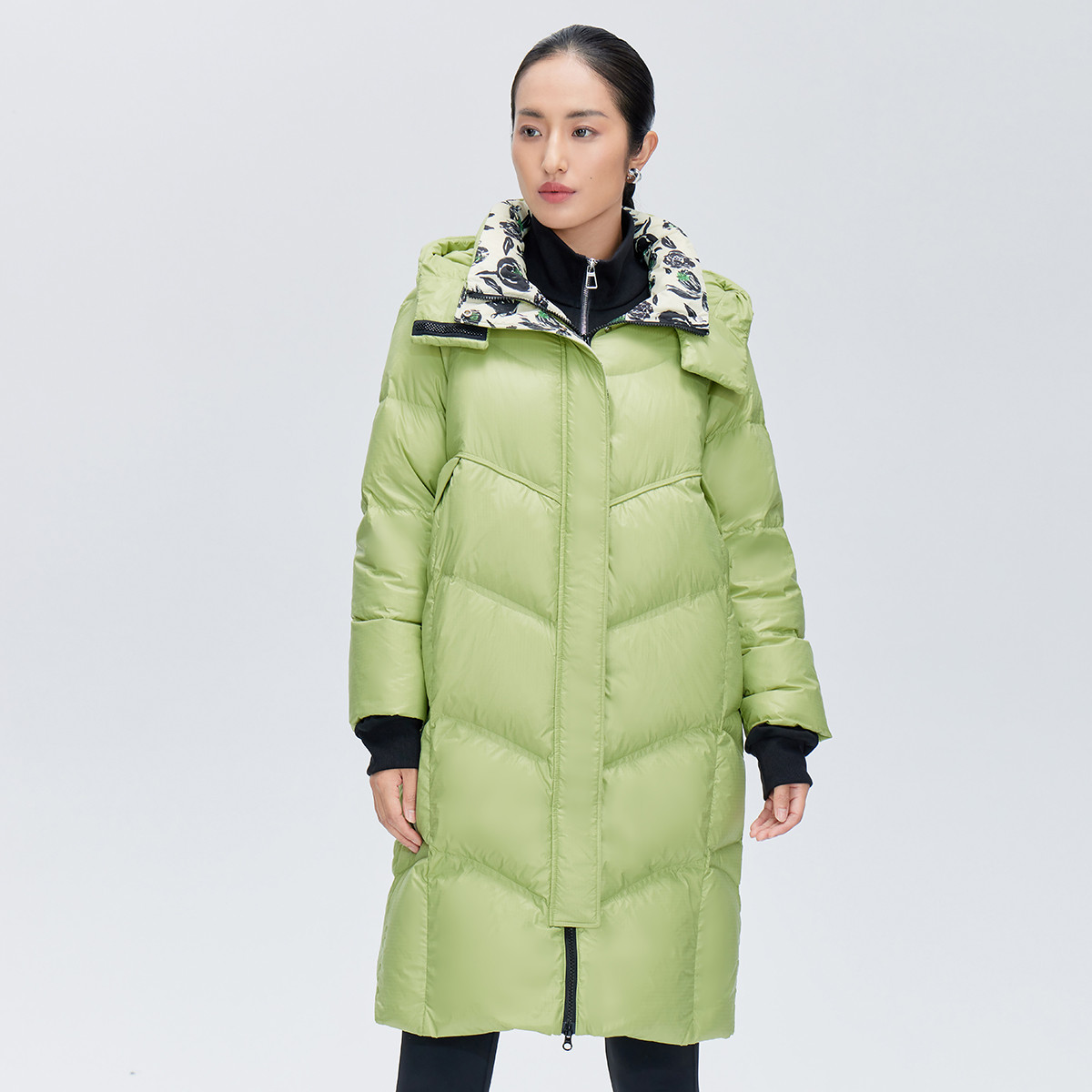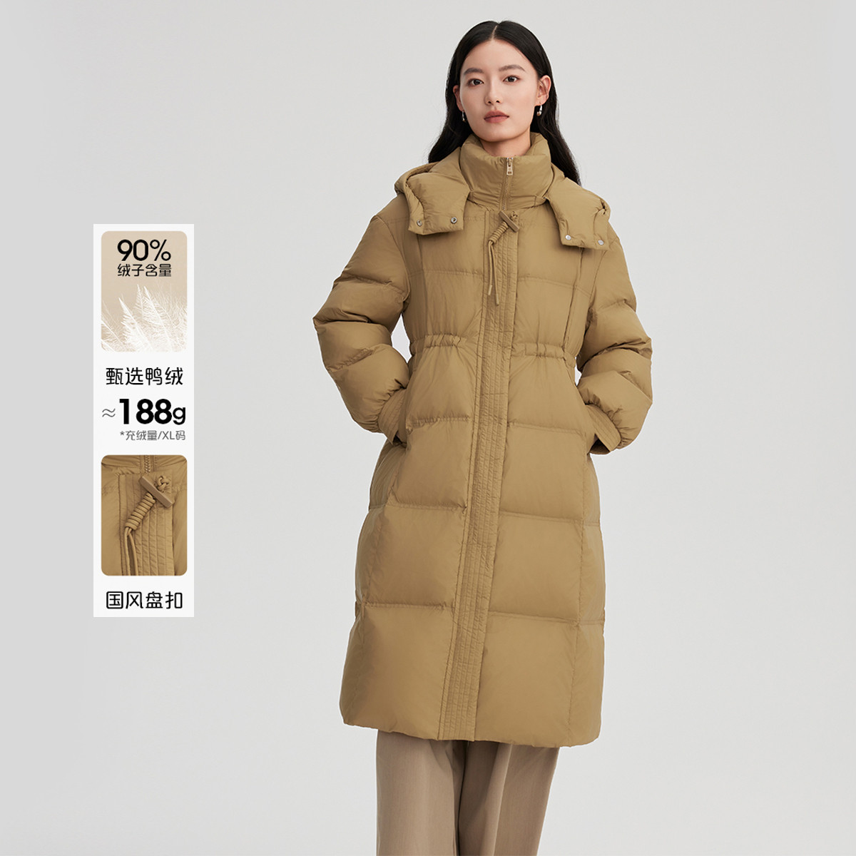 【商场同款】时尚休闲H型中长款羽绒服女御寒连帽鸭绒女式外套 835926