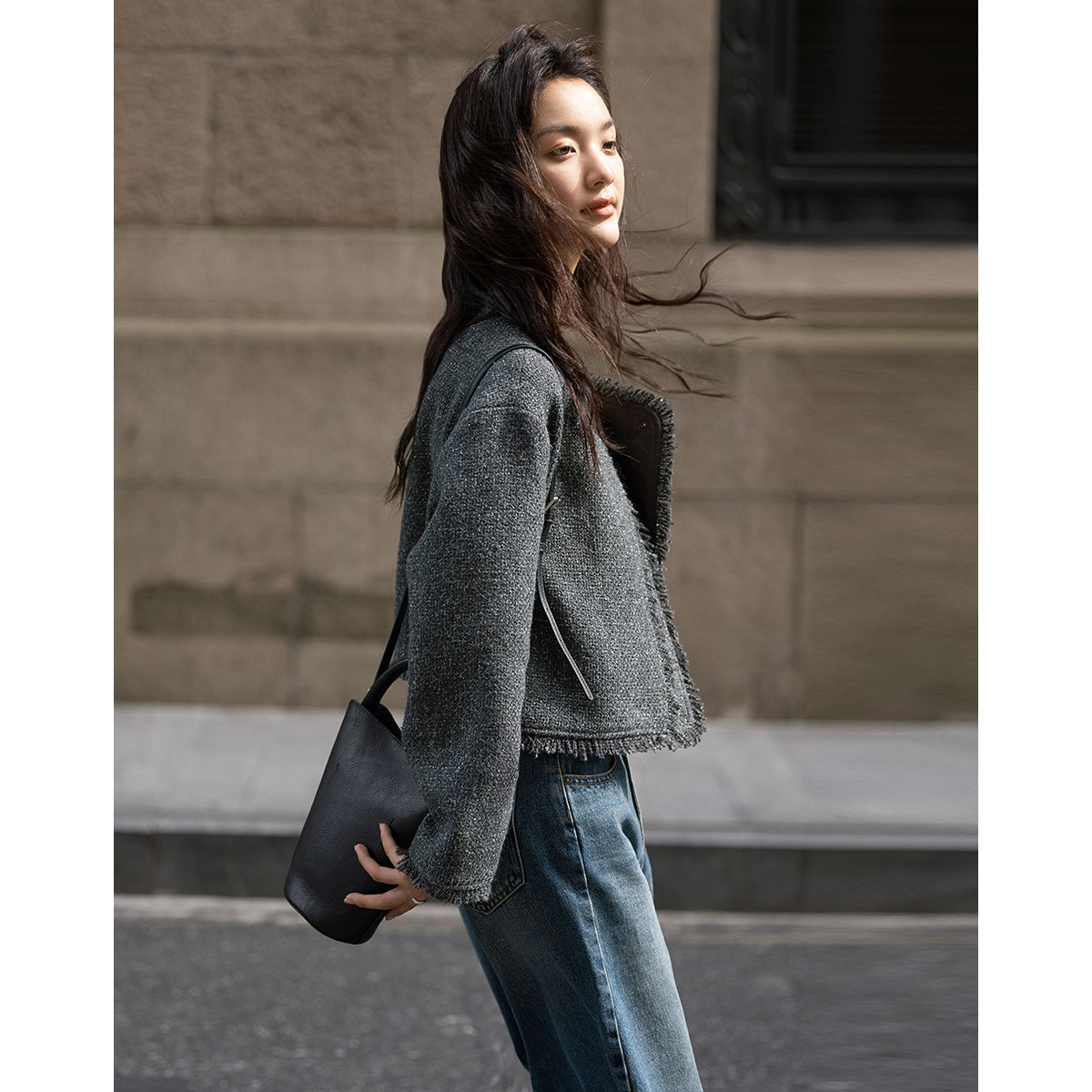 【流苏小香外套】冬知性优雅日常通勤气质深灰色宽松上衣 914754