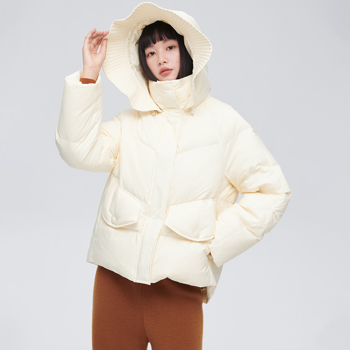 【鹅绒】厚款保暖连帽女士短款宽松休闲泡芙羽绒服 875871