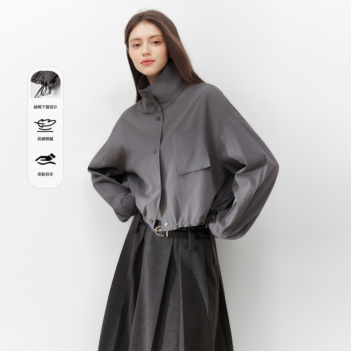 【2024秋季】通勤百搭工装风立领短款休闲外套简约抽绳夹克 738772
