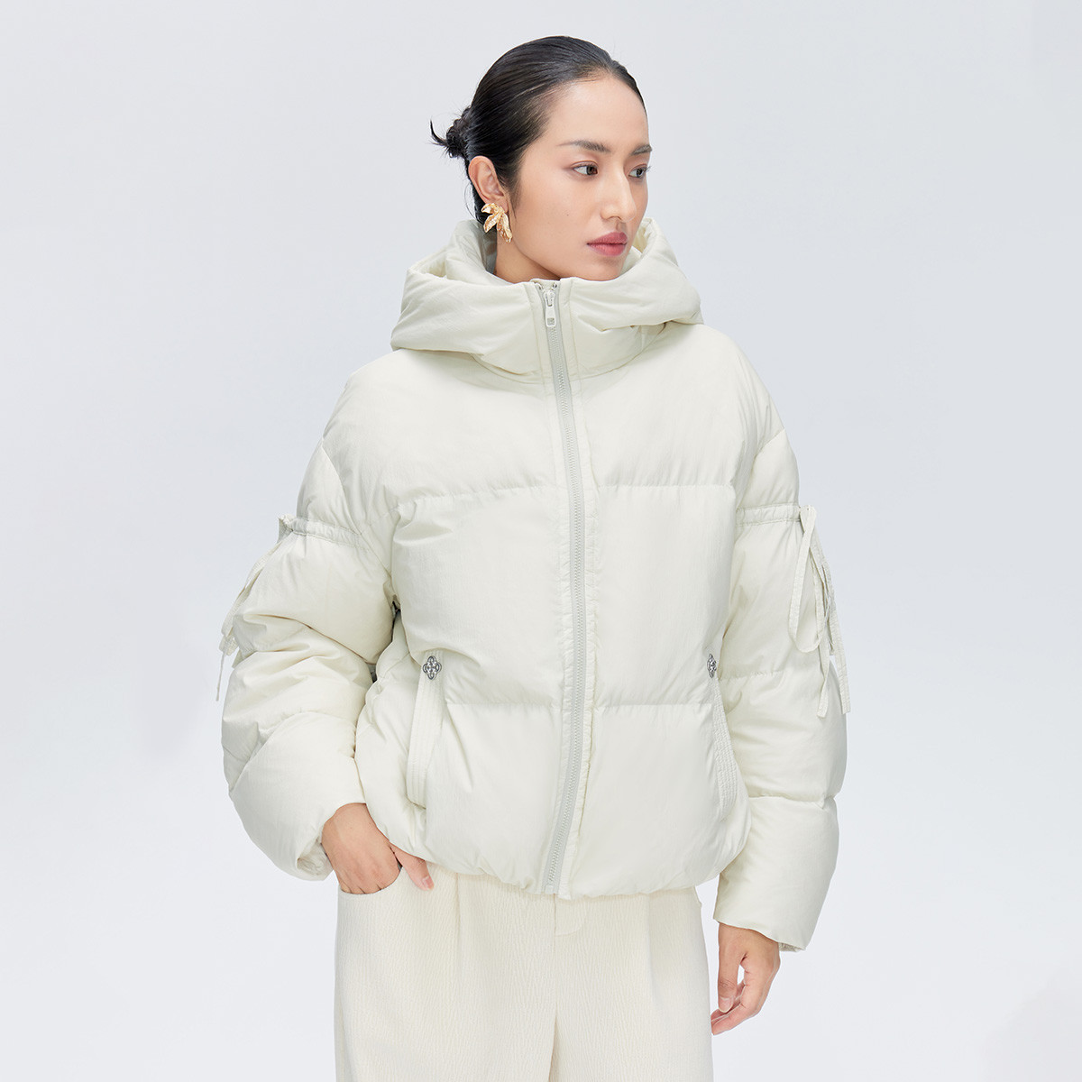 【商场同款】时尚绑带装饰短款鸭绒羽绒服女保暖连帽宽松外套女 410262