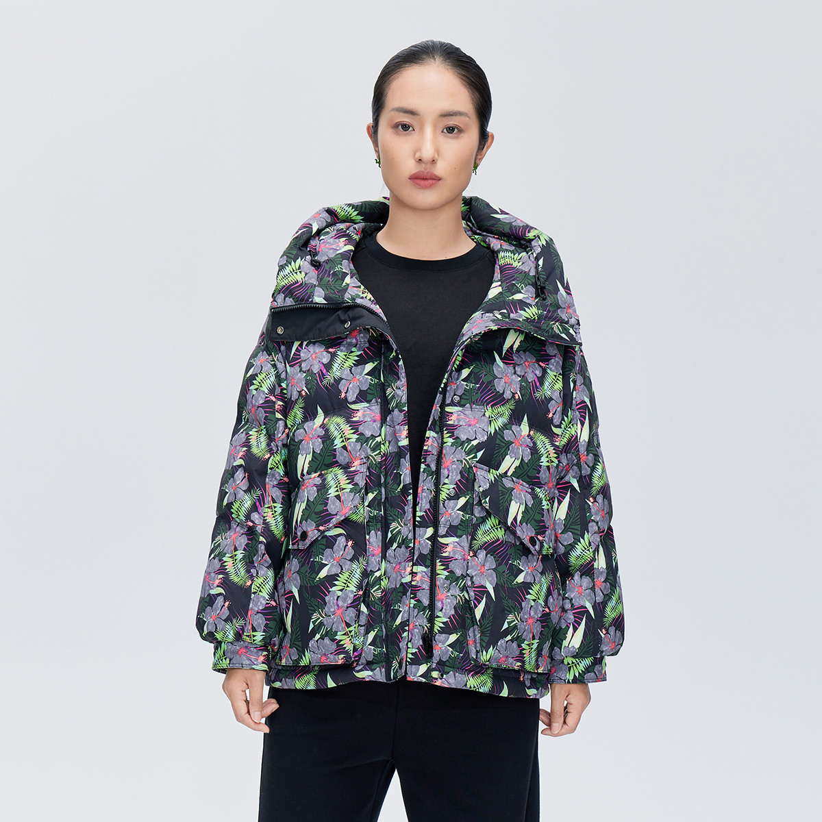 商场同款时尚甜美花芯帽檐鸭绒羽绒服女短款连帽御寒女式外套 123222