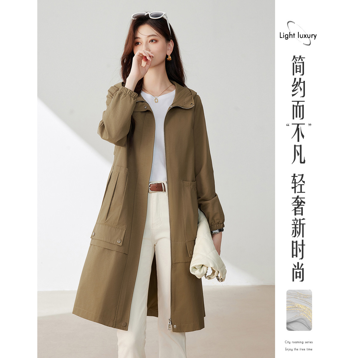 春时尚休闲连帽宽松版中长款气质风衣外套女 615256