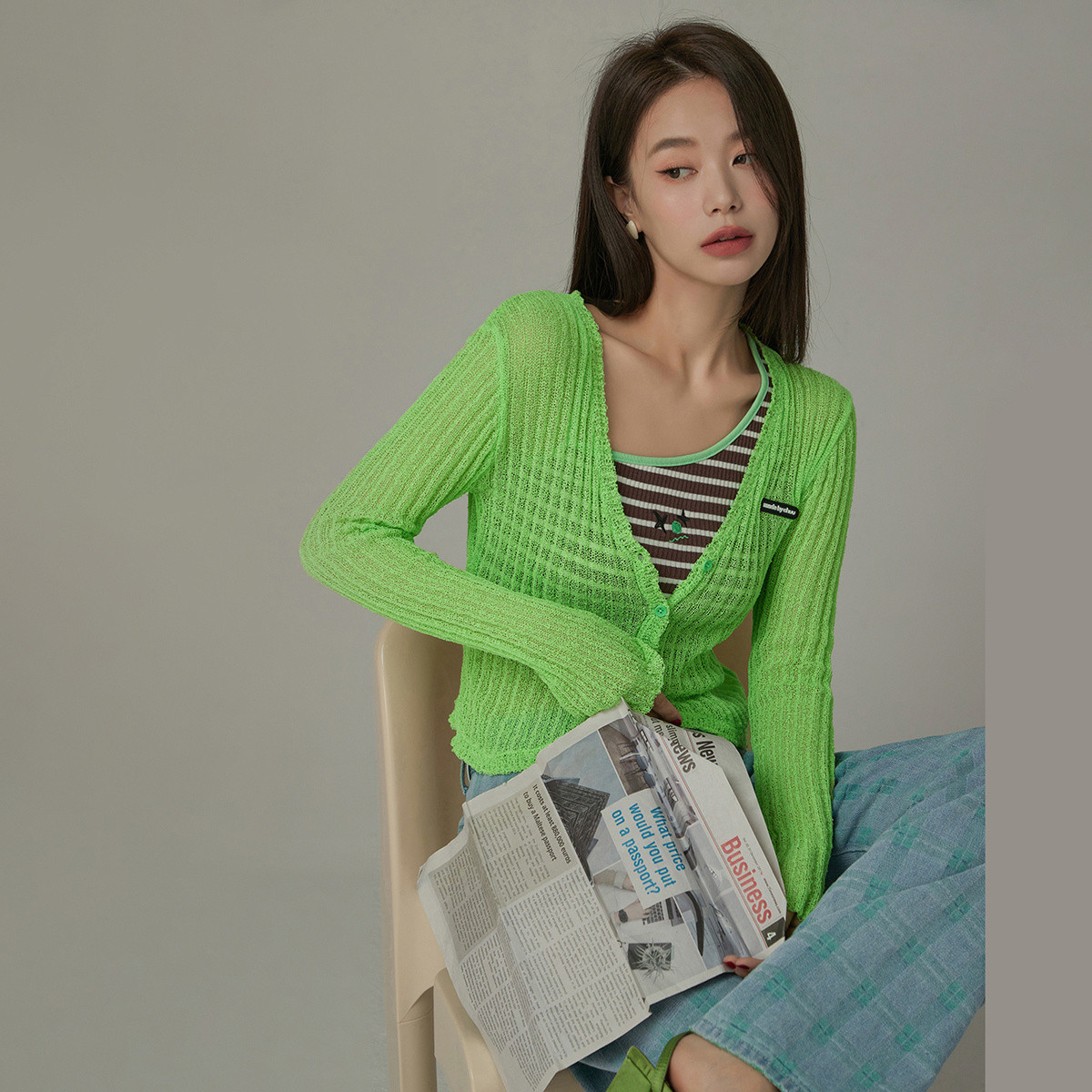 纯色V领针织薄外套女秋冬小个子短款长袖上衣 271251