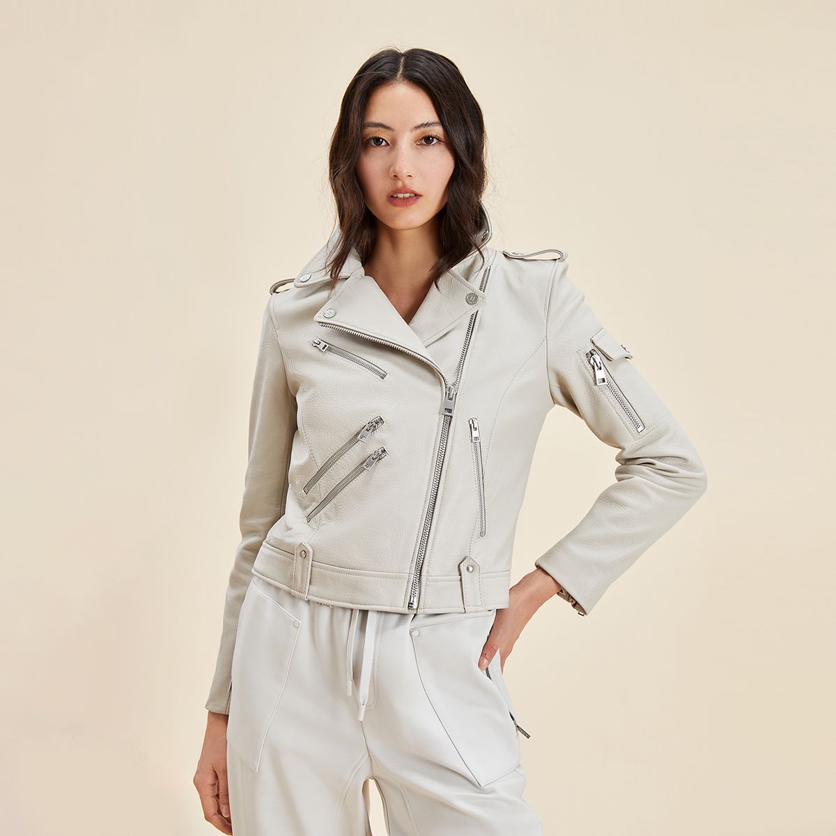 【气质潮流】春季修身短款翻领皮衣外套女 183258