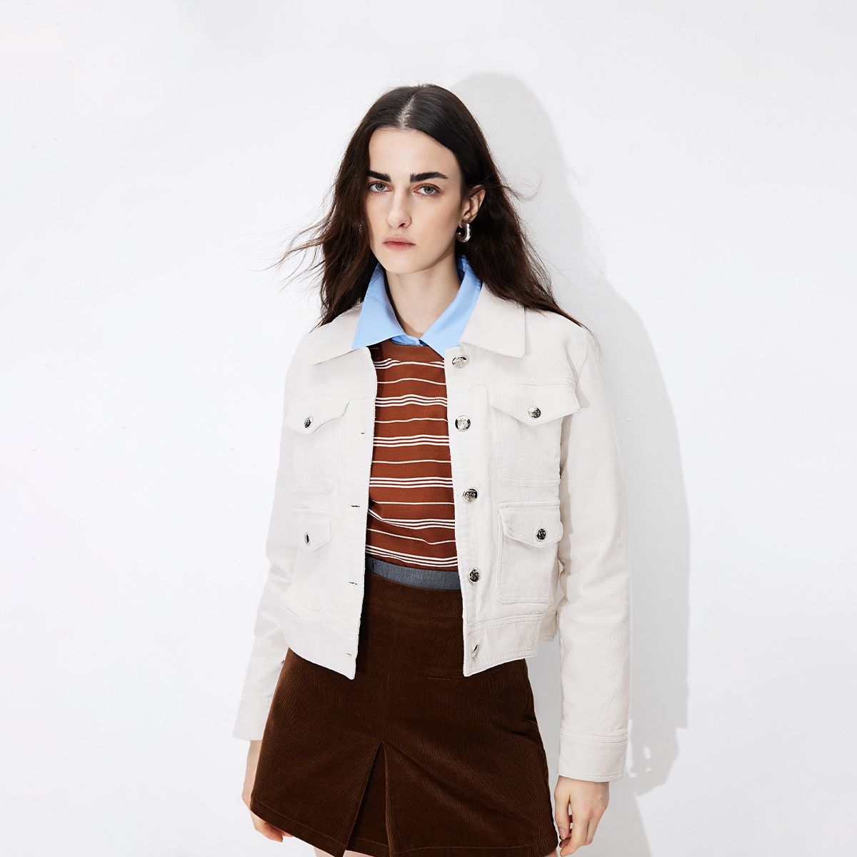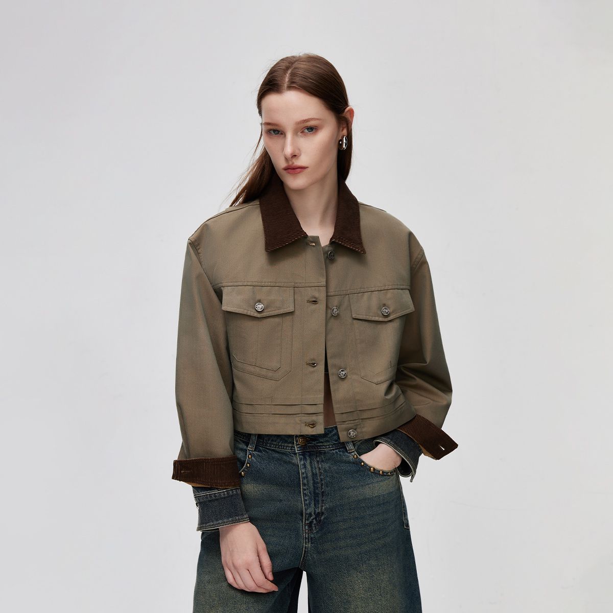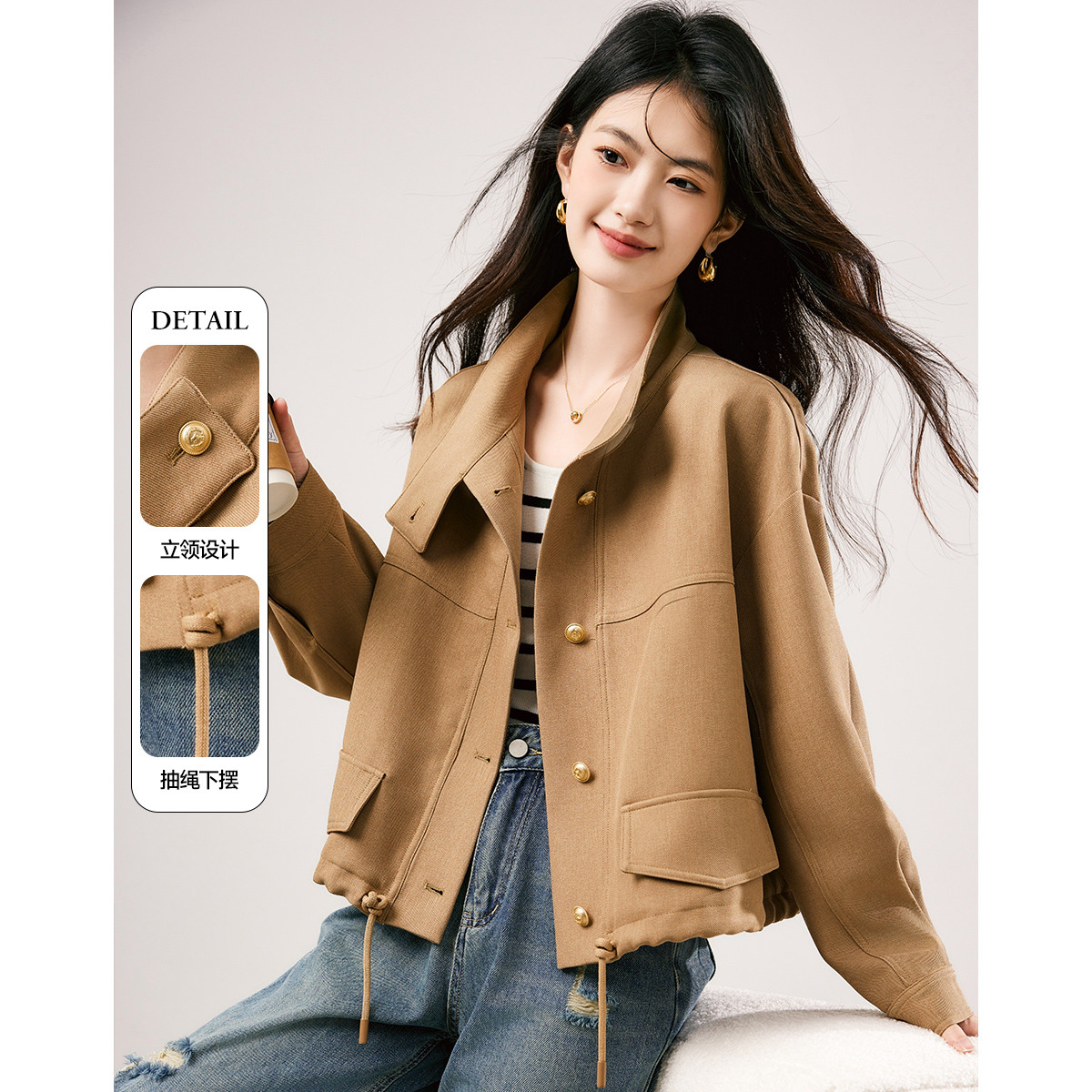 【复古百搭】春季口袋翻领宽松短款外套女 201882