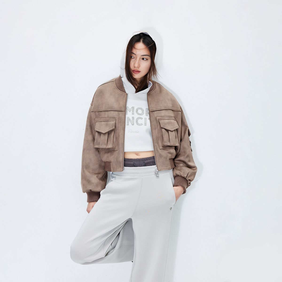 【雾面质感】春秋运动风立体肌理棒球领泡泡袖罗纹夹克外套女短款 502913