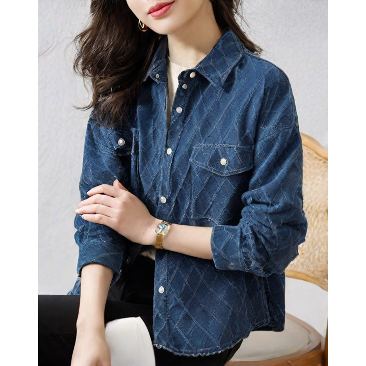 【时髦菱形纹理牛仔】春秋休闲中性风翻领直筒藏肉舒适衬衫式外套 453761