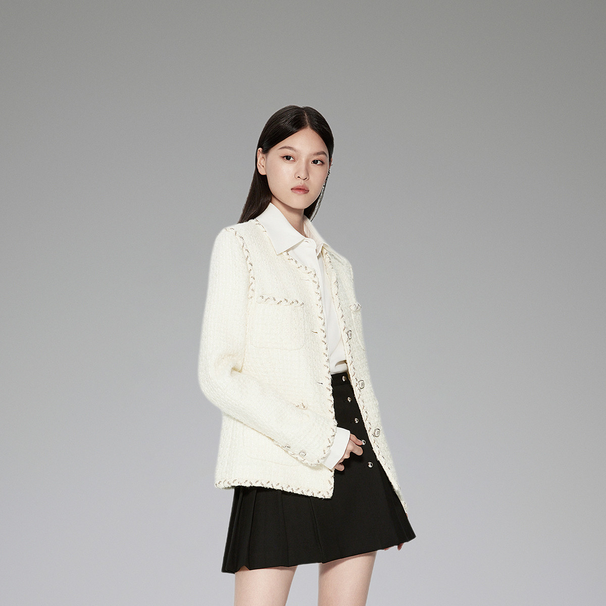 春装 通勤手工镶边羊毛花式纱小香风外套女 847119
