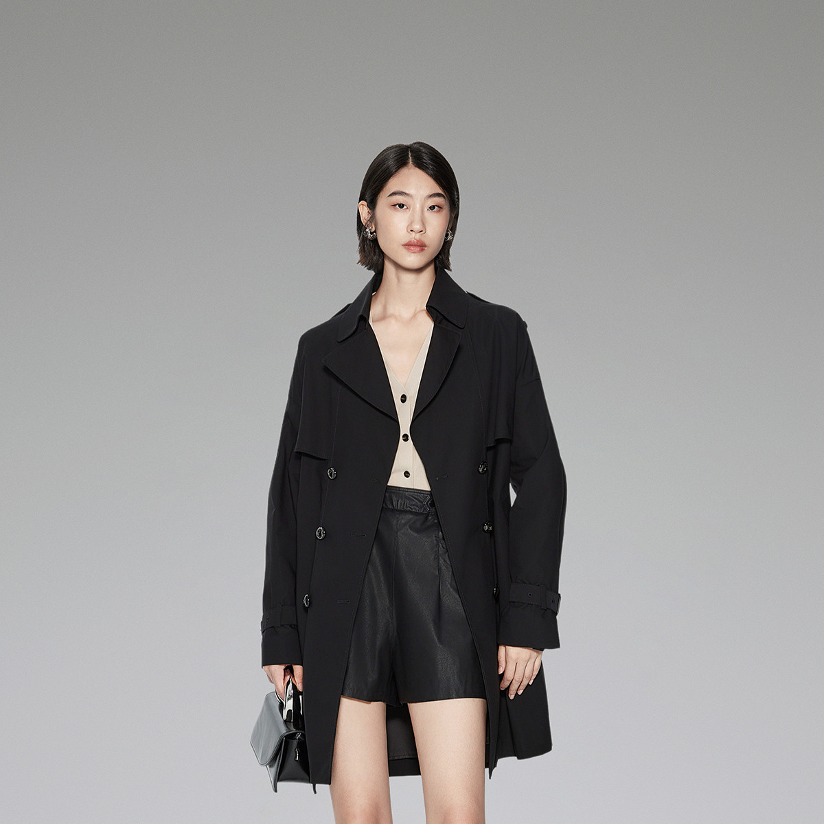 黑标系列春装 配腰带英伦风醋酸中长风衣外套女 343311