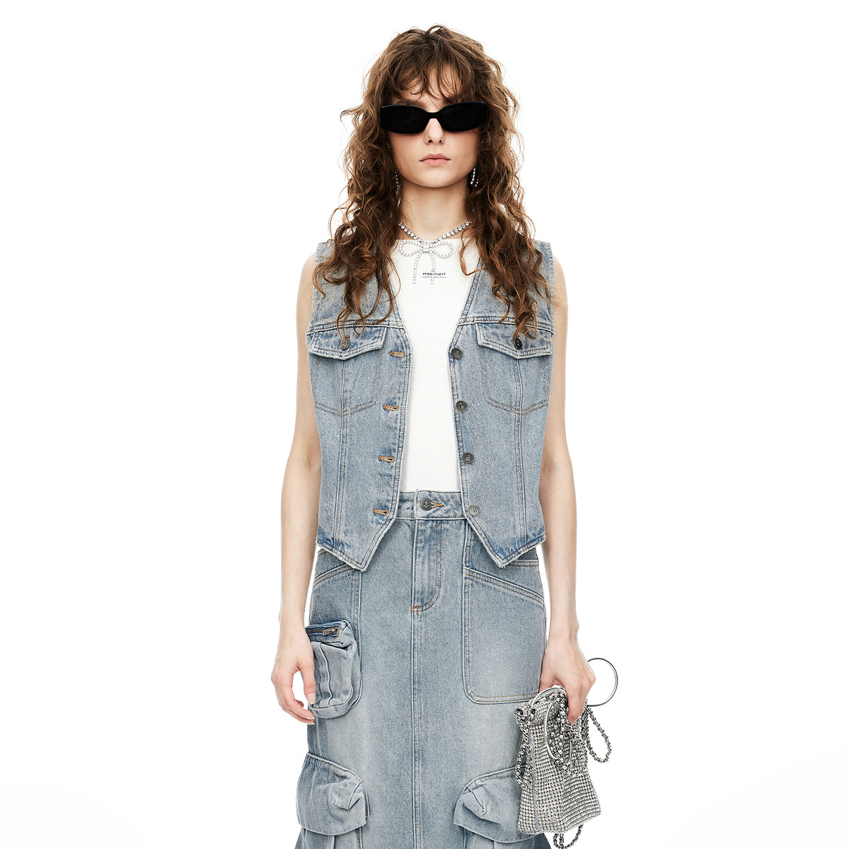地素牛仔马甲夏季时髦出街无袖上衣马甲外套女 664459