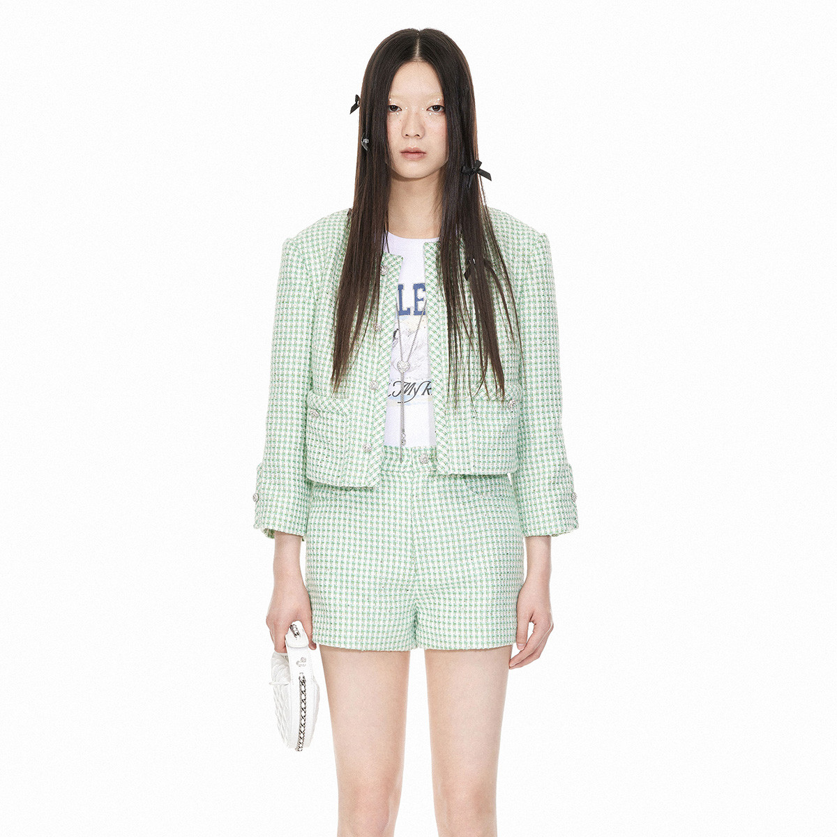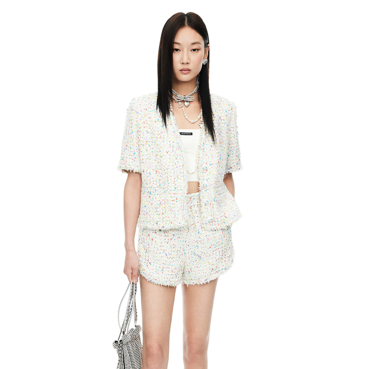 地素短外套夏季彩色粗花呢小香风V领上衣女 957451