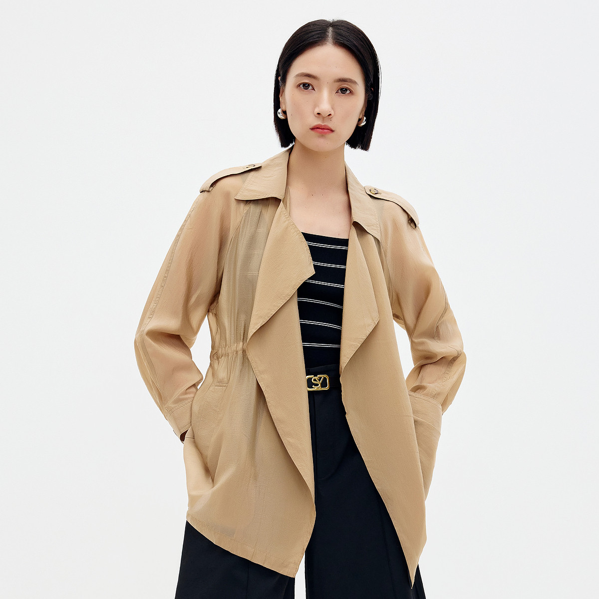 英伦休闲纯色风衣女春夏季户外时尚气质中长款简约薄款外套女 556867