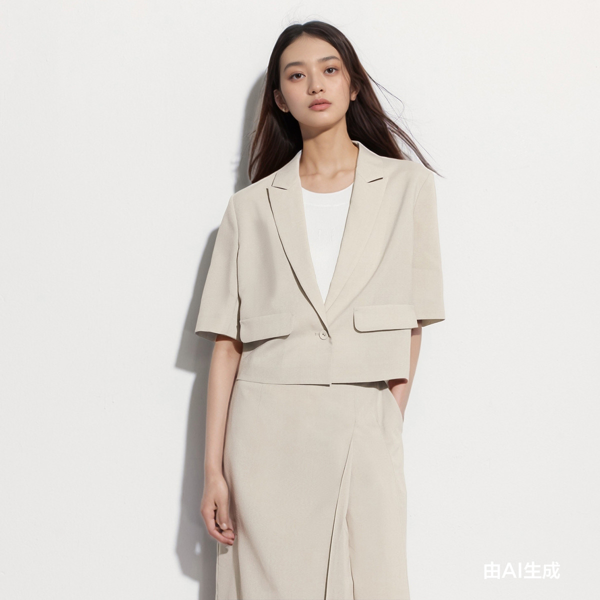 Gap女装夏季款易打理短款西装领短袖外套简约上衣464880 545434