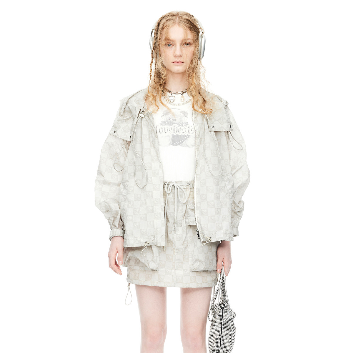 地素薄外套夏季连帽可调节抽绳设计长袖上衣女 346571