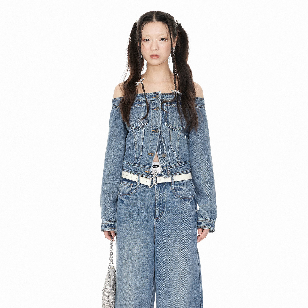地素一字肩牛仔外套夏季早春丹宁风复古摩登女 949259
