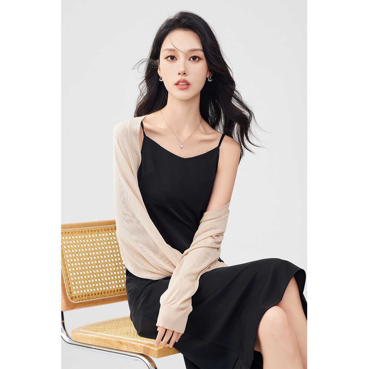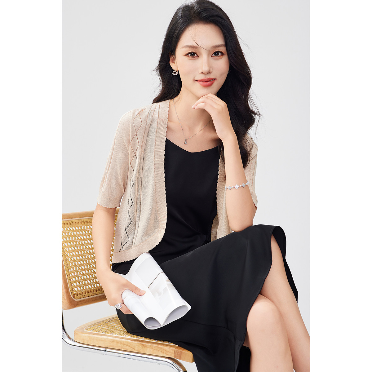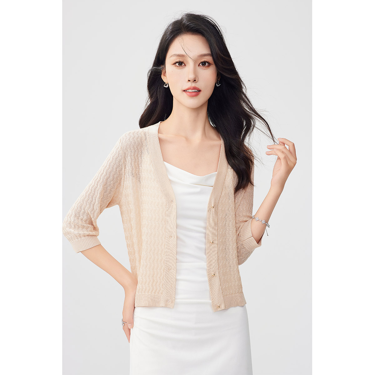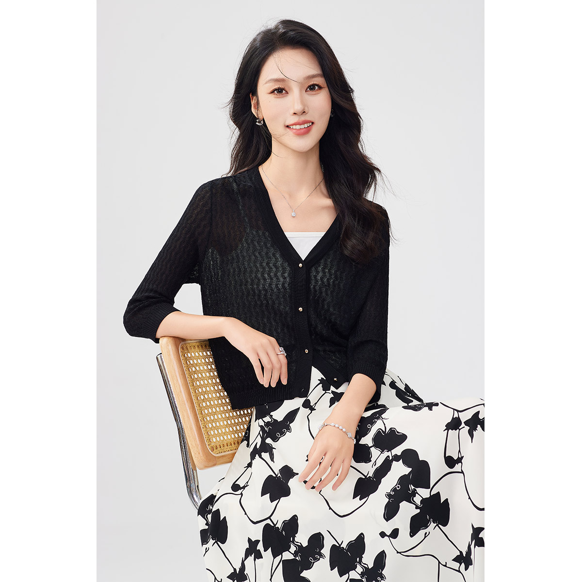 【含桑蚕丝含莱赛尔】薄款外套女轻薄夏镂空一粒扣空调衫上衣 331935