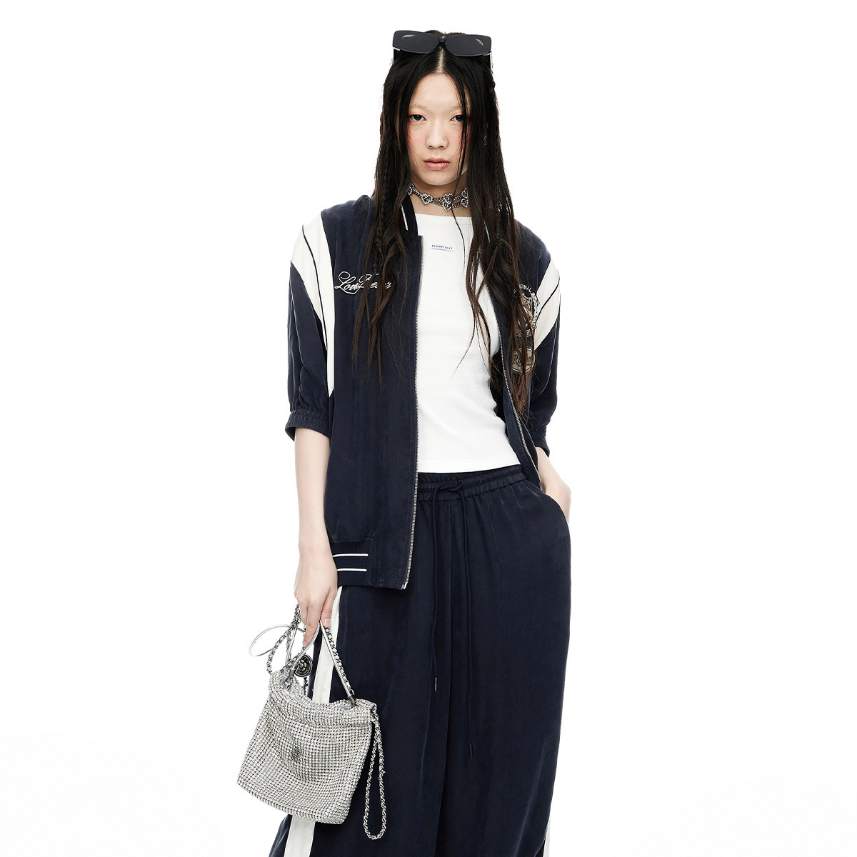 地素棒球外套夏季运动风休闲撞色五分袖设计女 986123