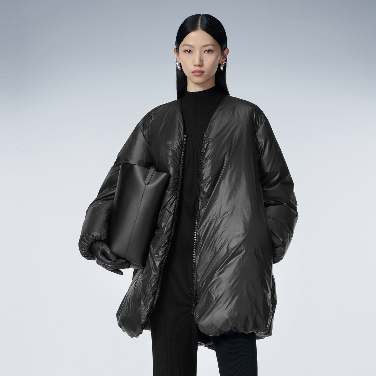 【90鸭绒】宽松中长款翻领收腰时尚保暖羽绒服女 578646