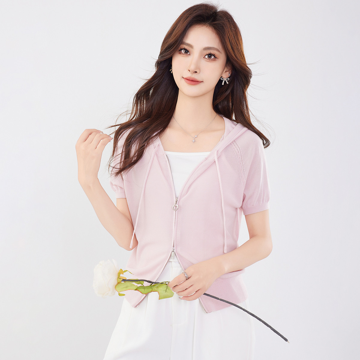 【100%莱赛尔】气质连帽纯色运动风外套女设计感双开拉链开衫 922719