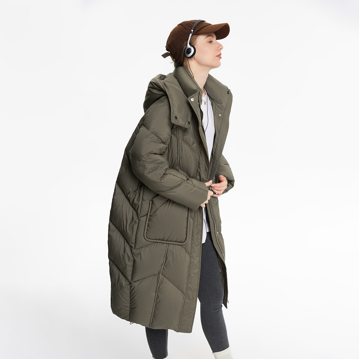 【美拉德穿搭】厚款连帽过膝长款女式宽松休闲保暖羽绒服 617567