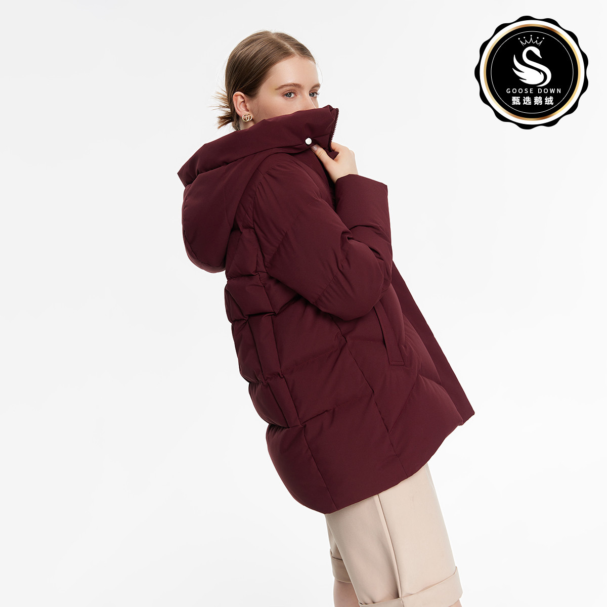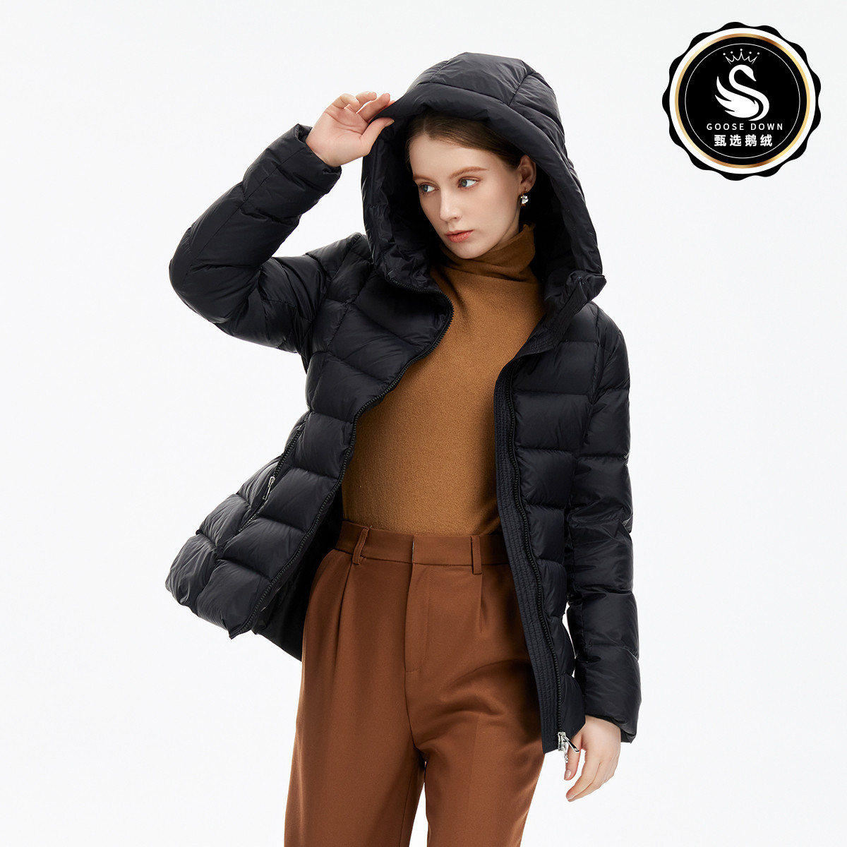 【鹅绒】百搭极简淑女风修身显瘦加厚连帽常规羽绒服 689759
