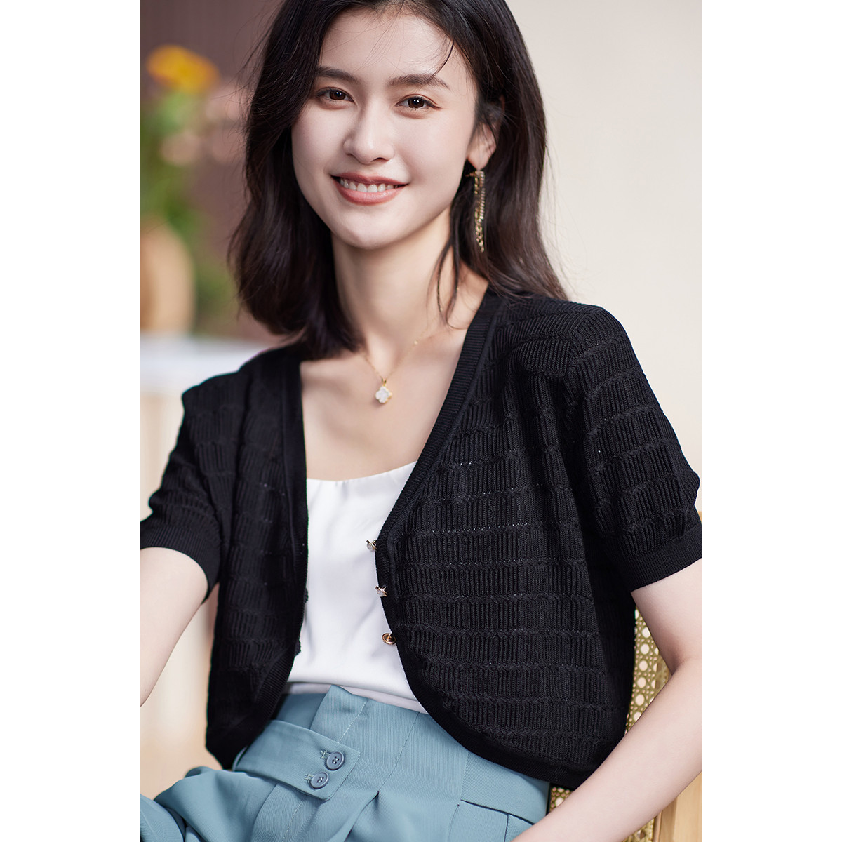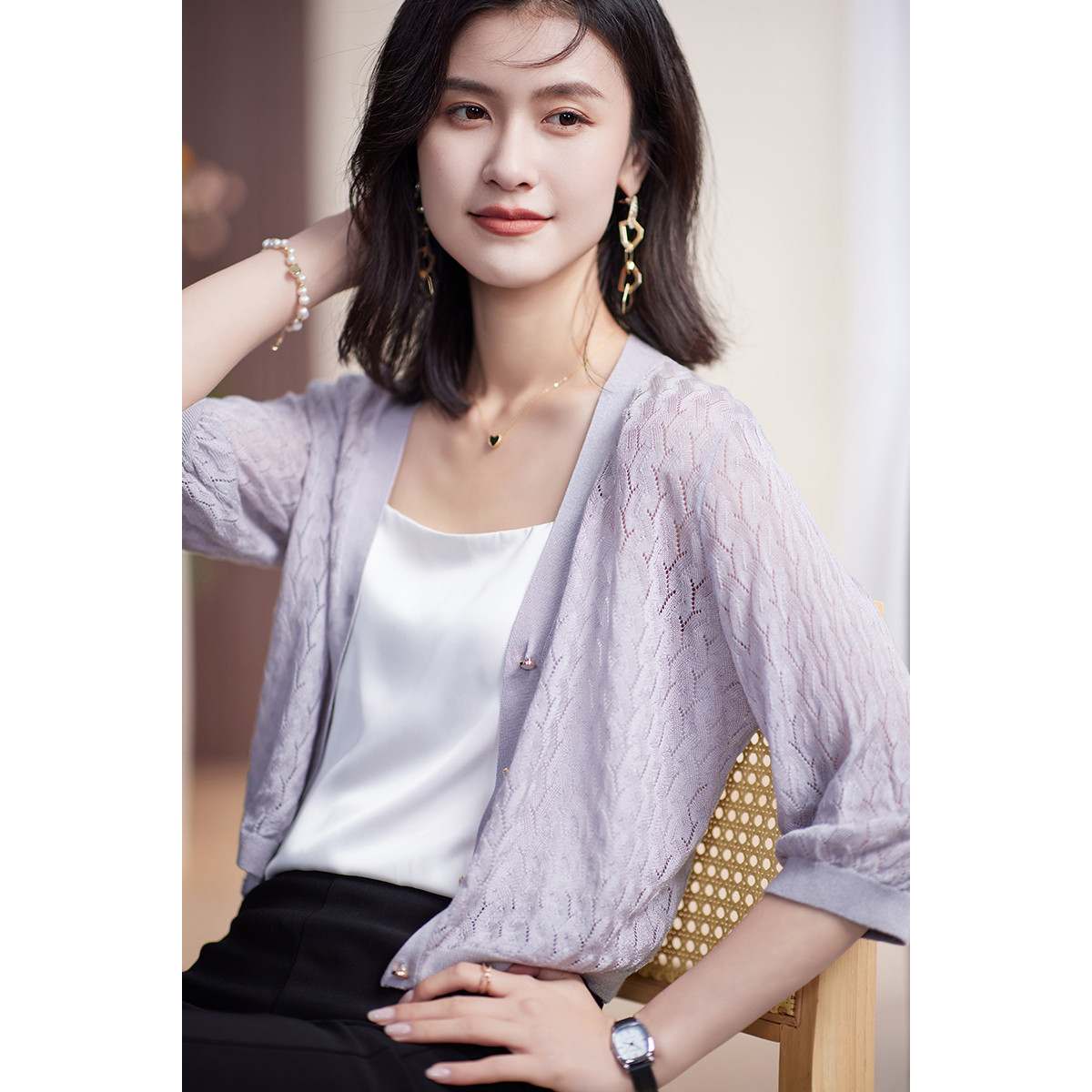 【含桑蚕丝含莱赛尔】夏季薄款披肩外搭提花镂空空调衫外套女夏 562079