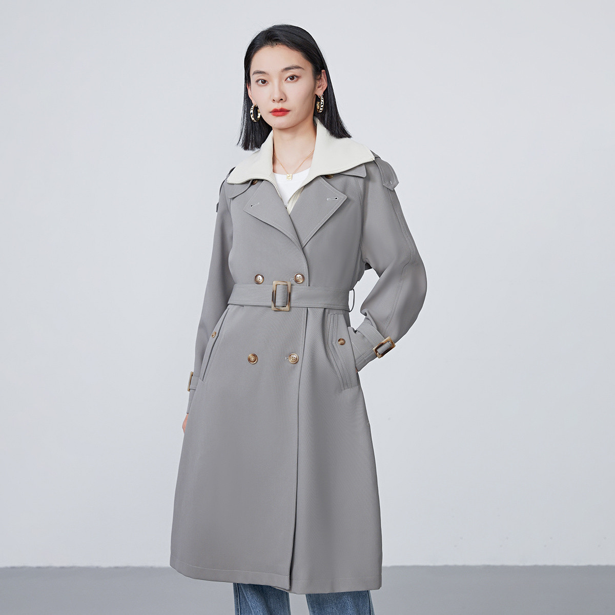【可拆卸领】春秋新款撞色拼接设计女式气质休闲系带风衣外套 295711
