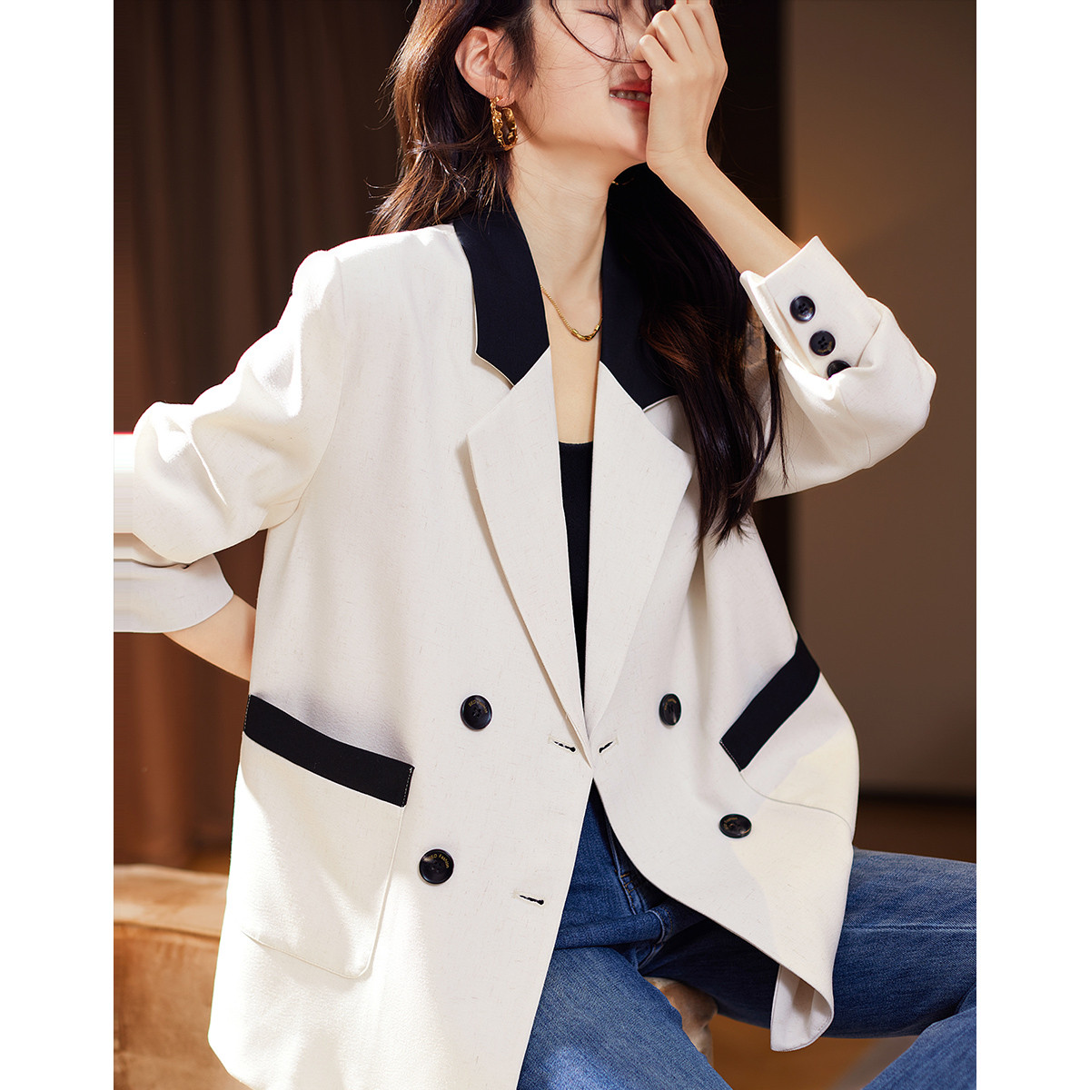 通勤西装外套2025年春夏新款撞色高级感休闲西装宽松女式外套 990217