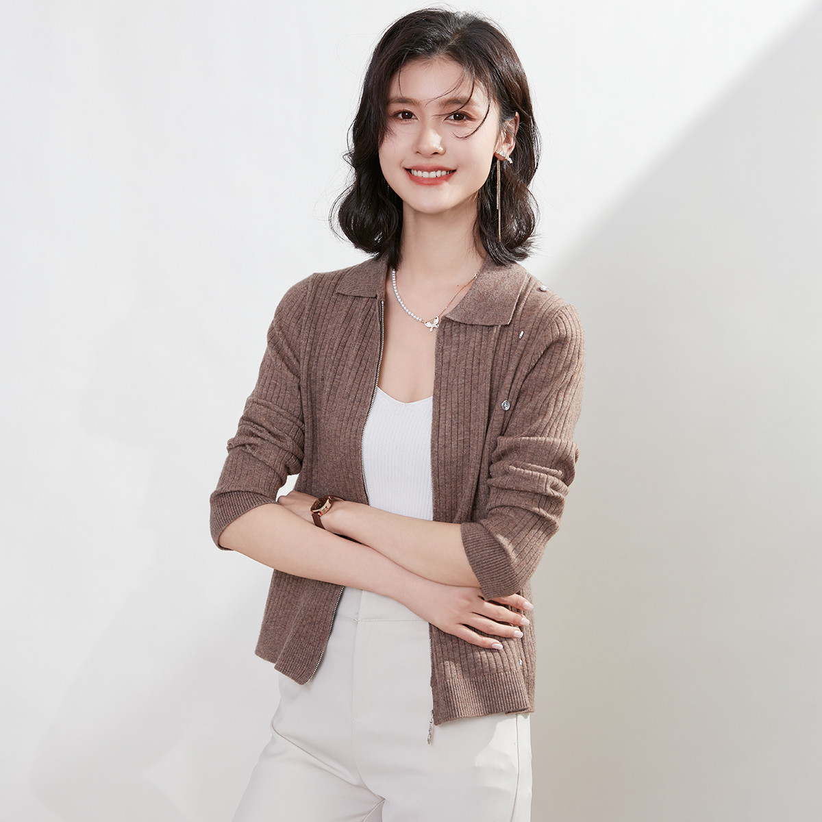 【拉链款针织开衫】纯色翻领舒适针织衫简约坑条显瘦百搭开衫外套 689823
