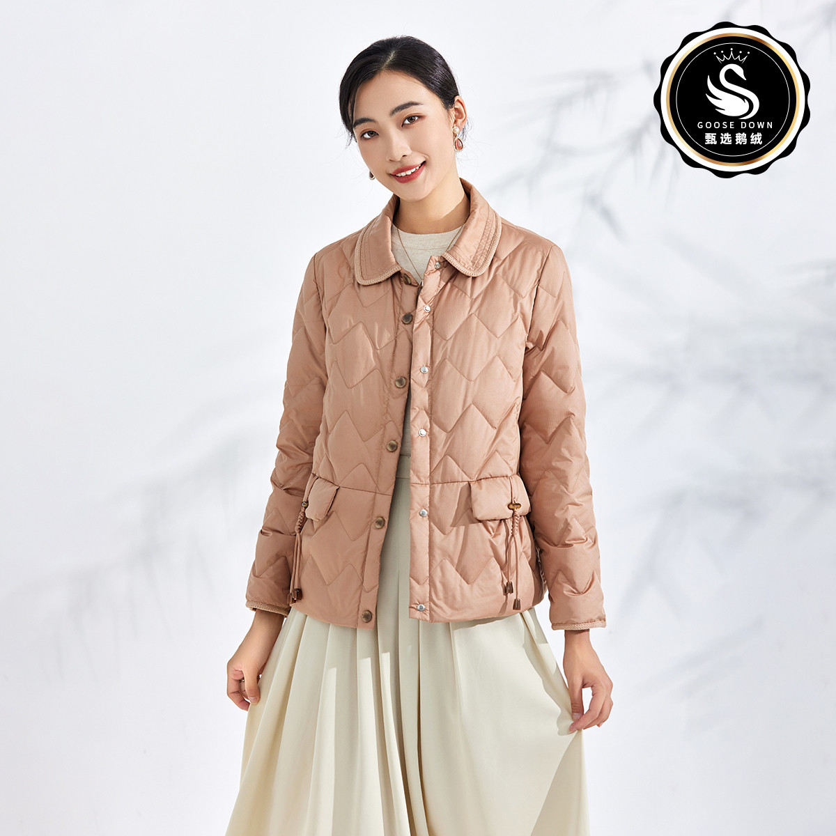 【鹅绒】简约轻薄轻暖气质翻领短款单排扣直筒羽绒服 562207