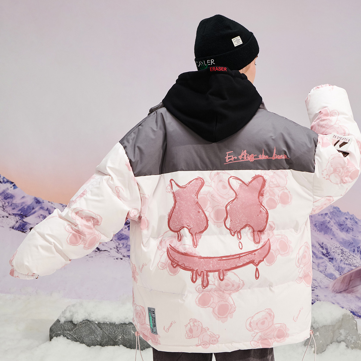 冬季立领短款羽绒服拼接外套休闲宽松保暖上衣男女同款 337687