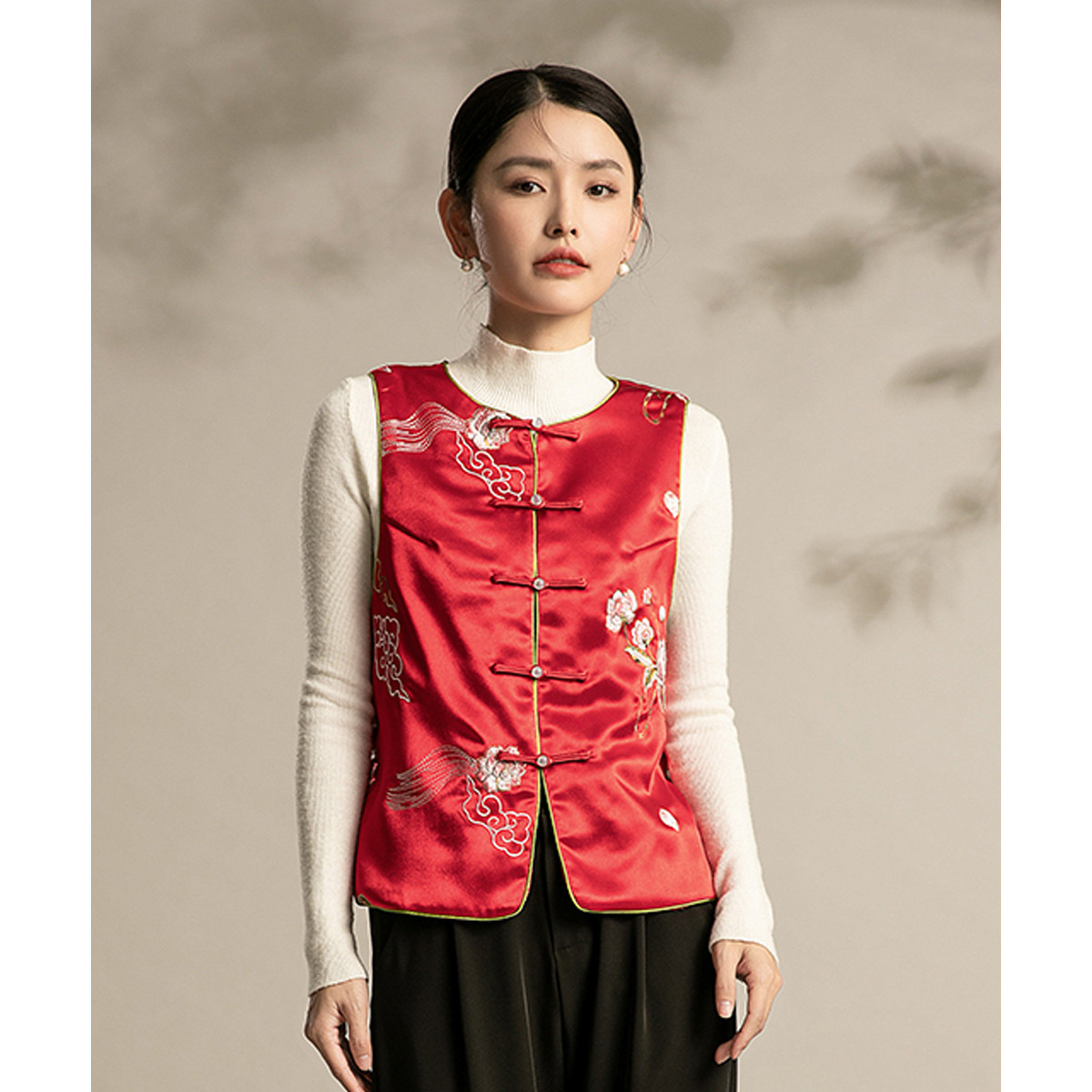 高级感国风复古气质重工刺绣马甲宽松显瘦上衣圣诞红无袖马夹 090591