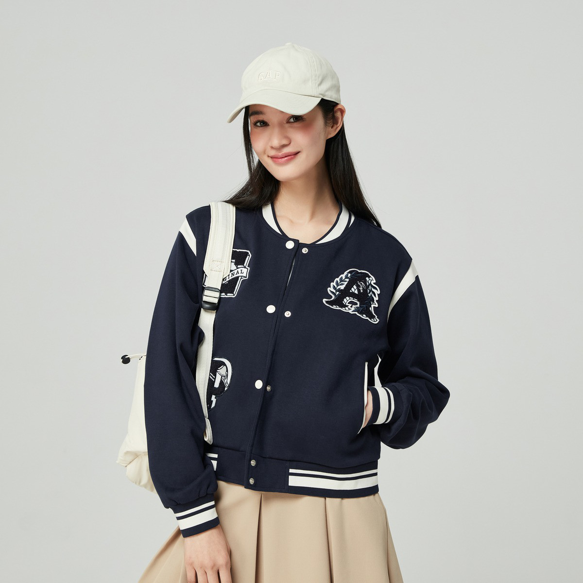 Gap女装春季纯棉撞色贴布绣logo棒球服学院风外套872711 901082