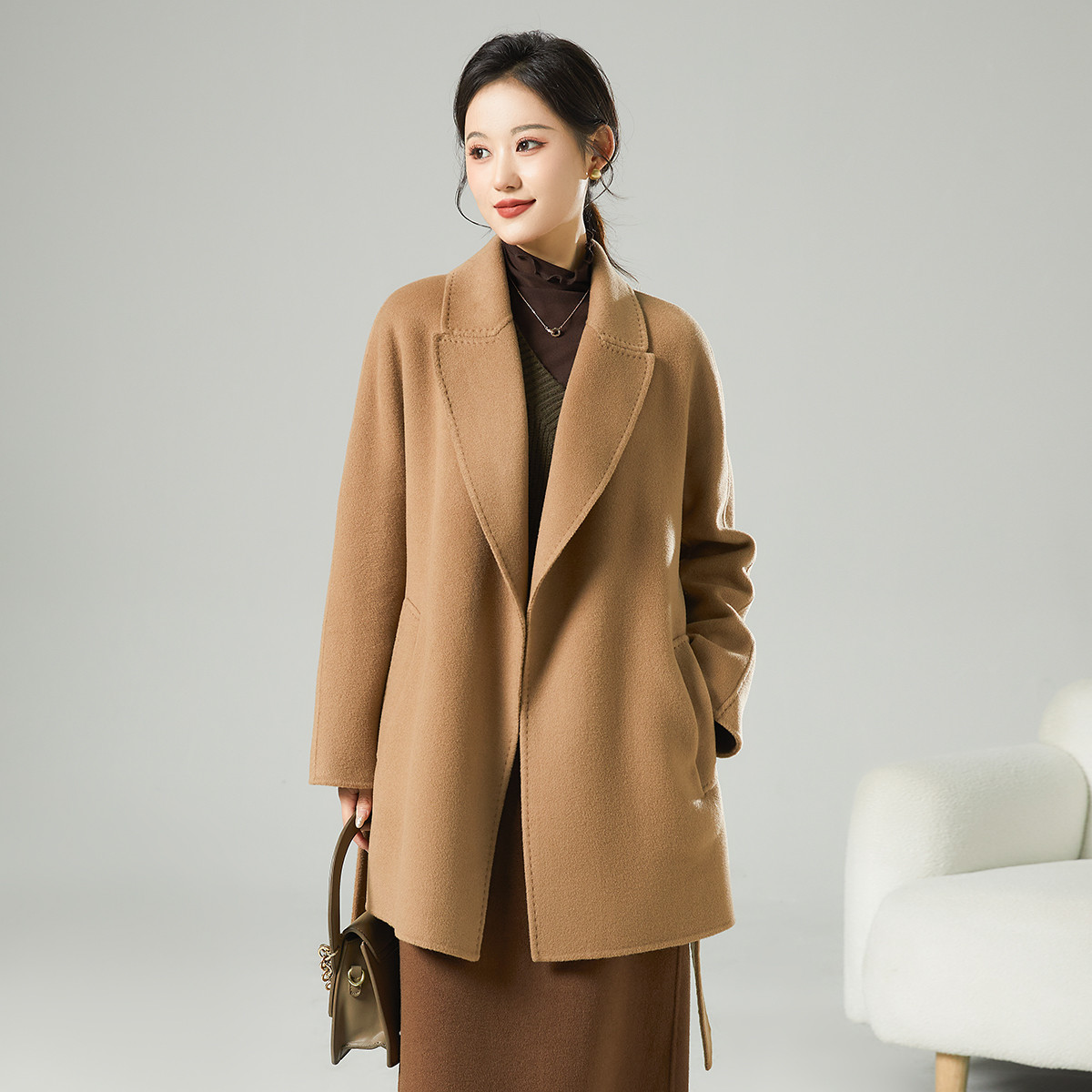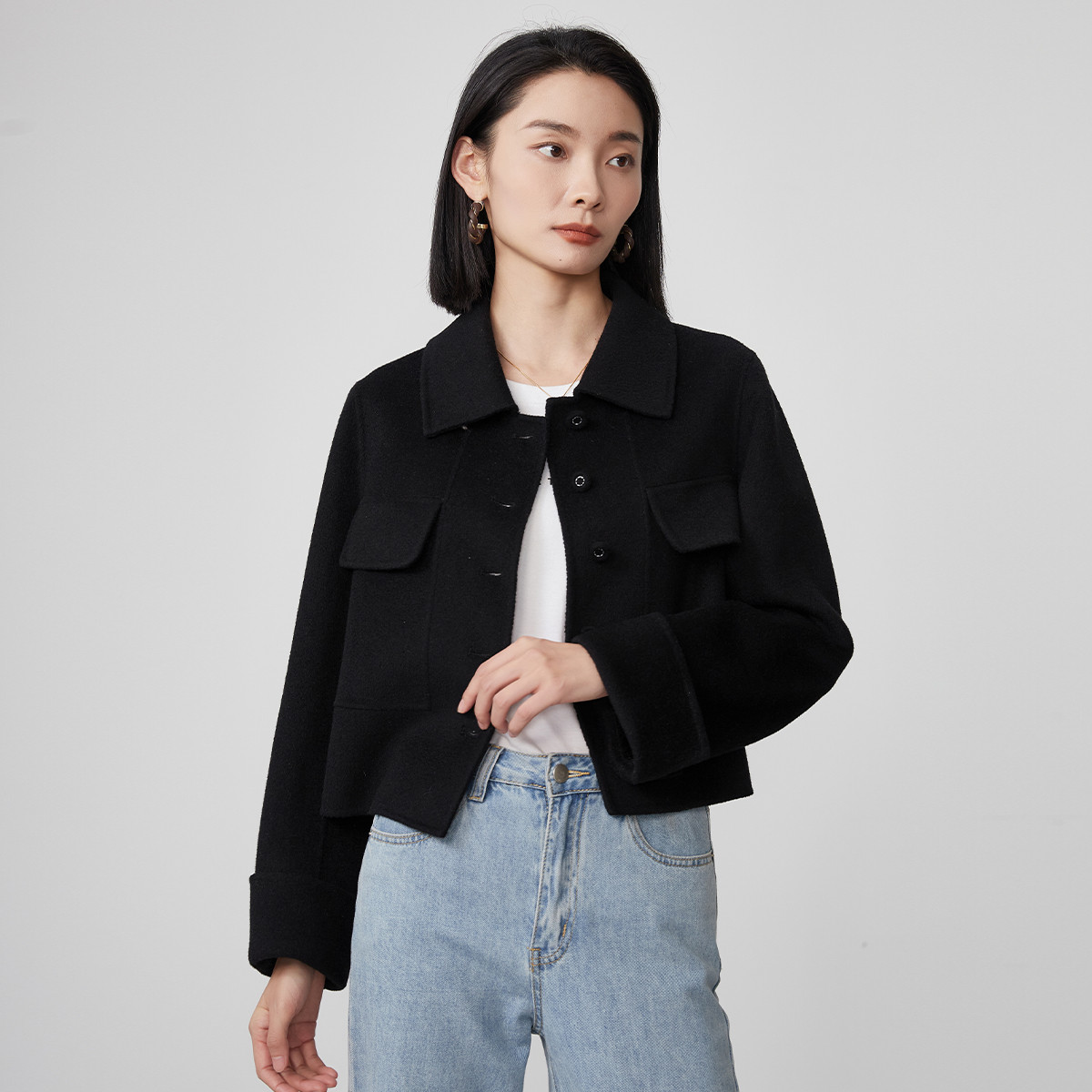 春秋小个子简约时尚羊绒大衣女式短款双面呢羊毛大衣外套 523103
