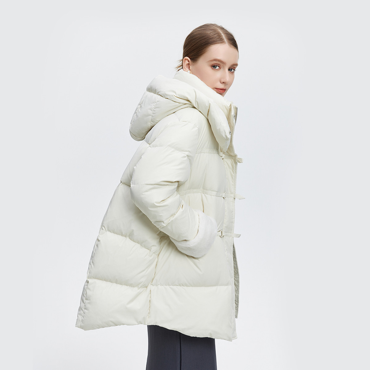 【90鸭绒】宽松中长款翻领收腰时尚保暖羽绒服女 578646