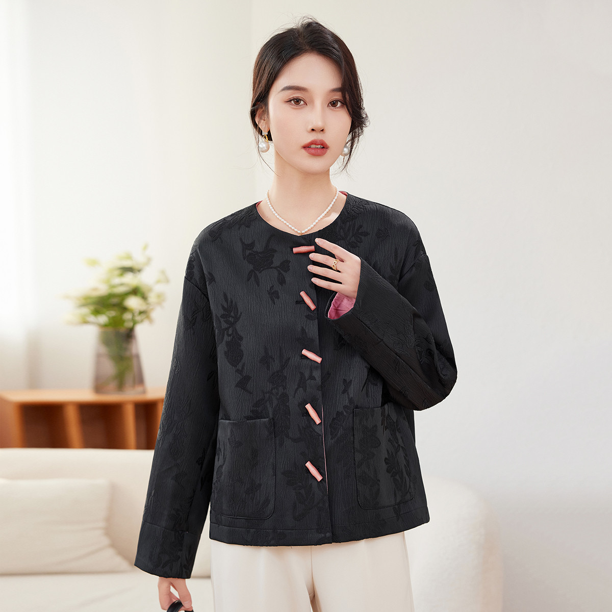 2024春秋新款高端复古新中式女式国风拼色落肩袖时尚休闲外套 756959
