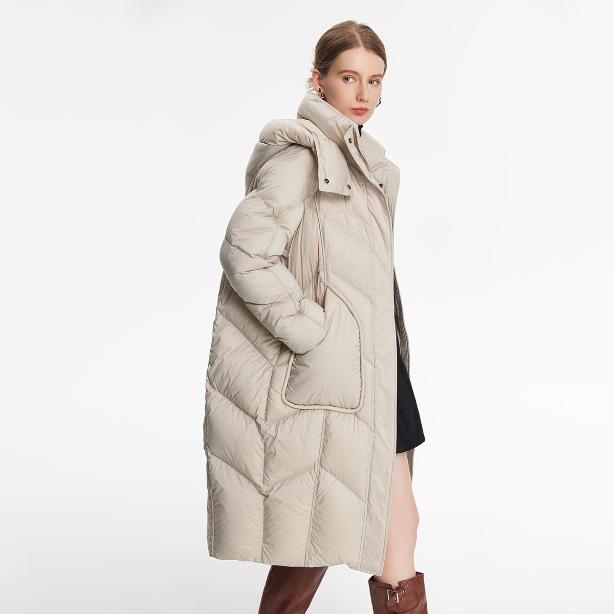 【鹅绒爆款】冬季女士长款羽绒服简约连帽防寒保暖极寒服 593759
