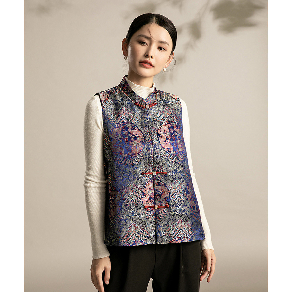 新中式国风刺绣马夹女春装款时尚复古提花潮流马甲上衣 951327