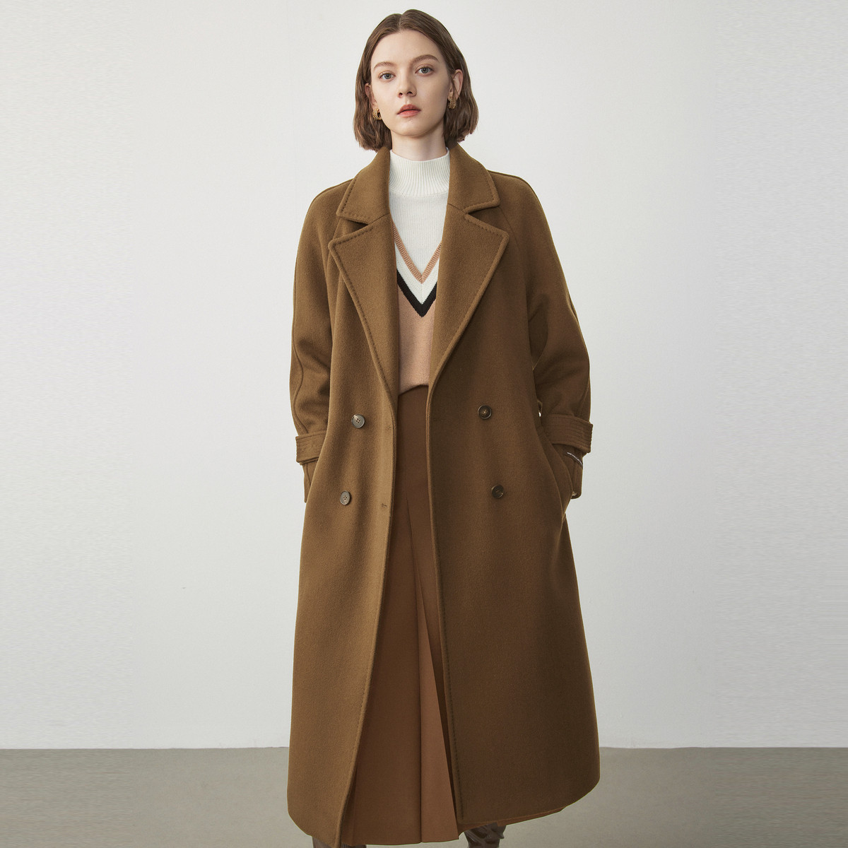 春秋小个子系带羊毛大衣女式中长款优雅气质通勤双面呢外套 949407