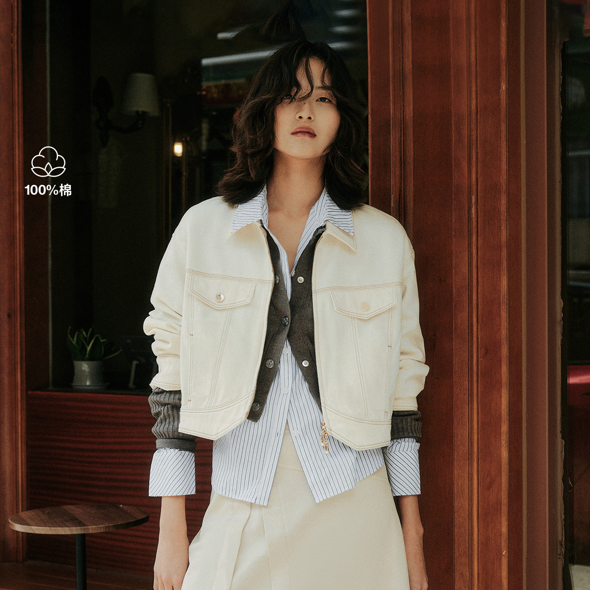 【牛仔外套】2025春季落肩长袖双向拉链翻领宽松牛仔外套女 366298