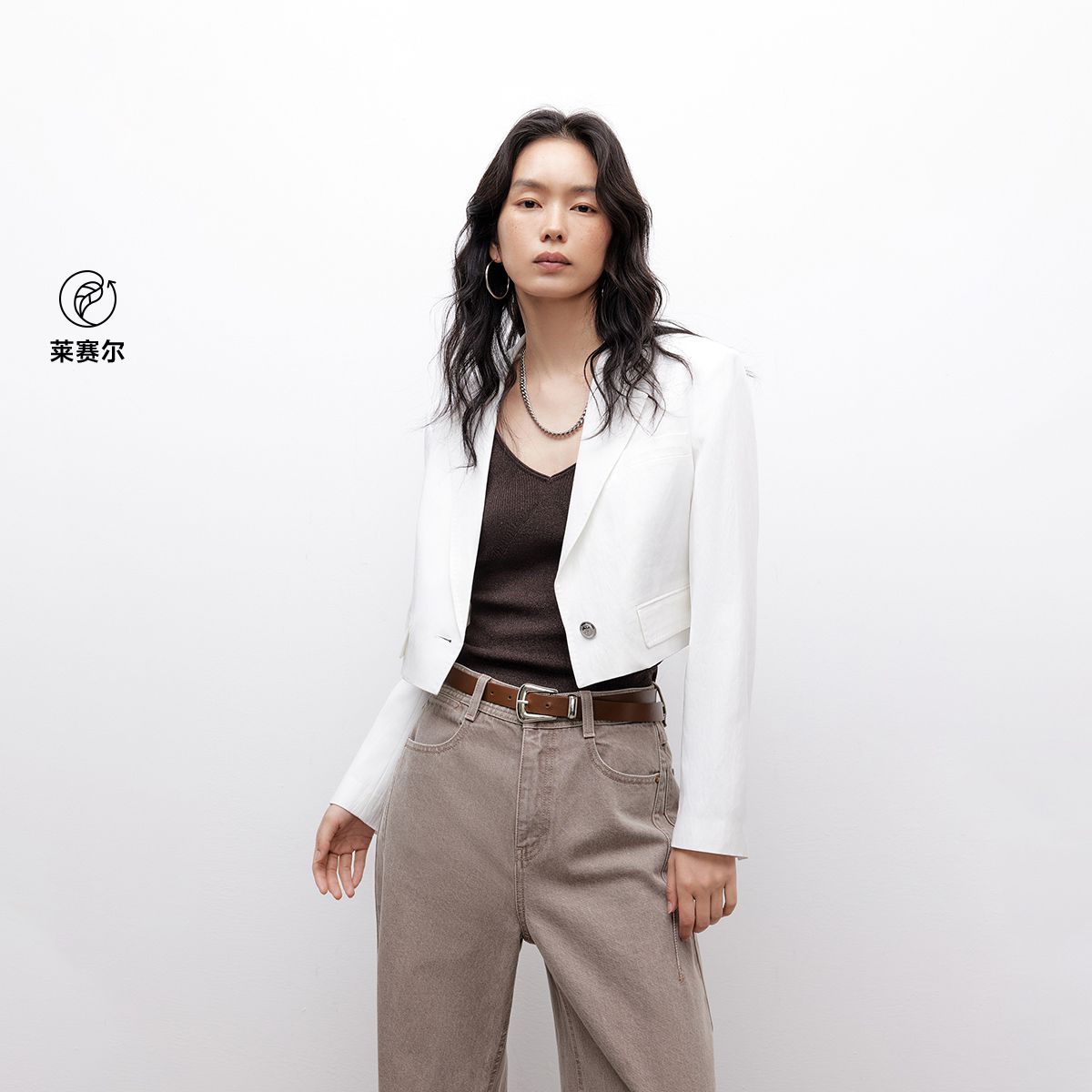 【挺阔有型】2025春季时尚通勤风高腰短款长袖西服外套女 353946