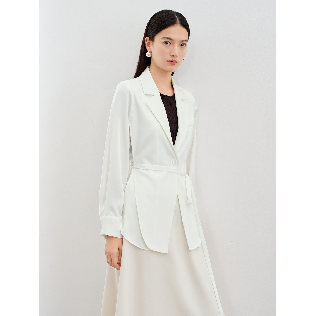 玖姿旗下安娜蔻系列简雅OL风拼接系带收腰西装休闲外套女春季 286604