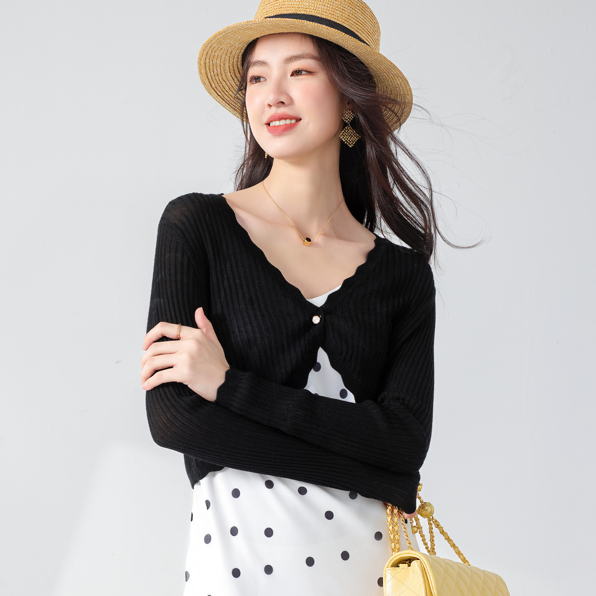 【含桑蚕丝】轻薄透气纯色百搭单粒扣针织开衫毛衣外套空调衫 796563