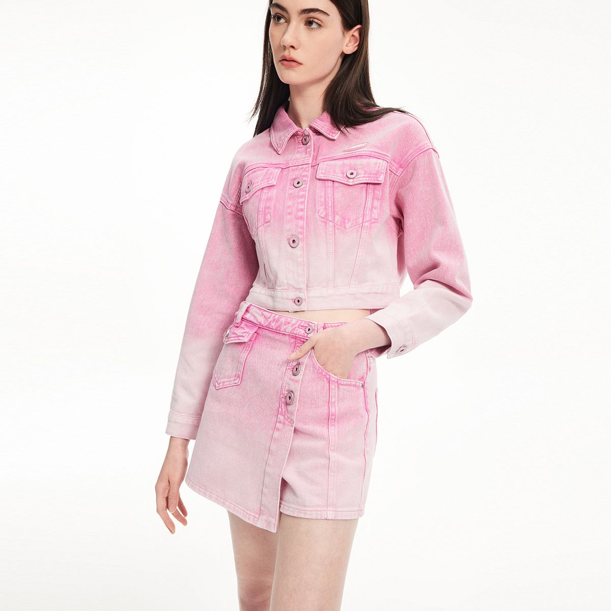 【纯棉面料】春秋外套高街时髦做旧渐变水洗牛仔长袖短外套女 974545
