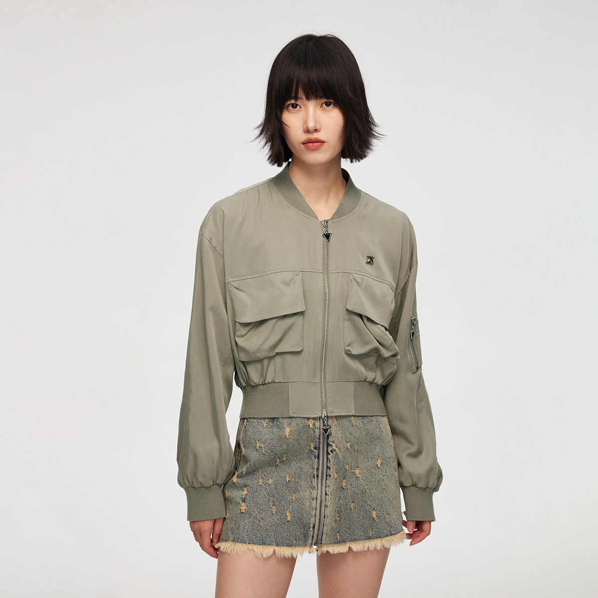 【潮流休闲】夏季立领落肩短款棒球服外套女 233178